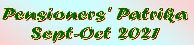Pensioners' Patrika journal No 14. for the months of September- October 2021 has been released as e-Journal. The same has been brought up here. Just click the LINK given below to read the journal.